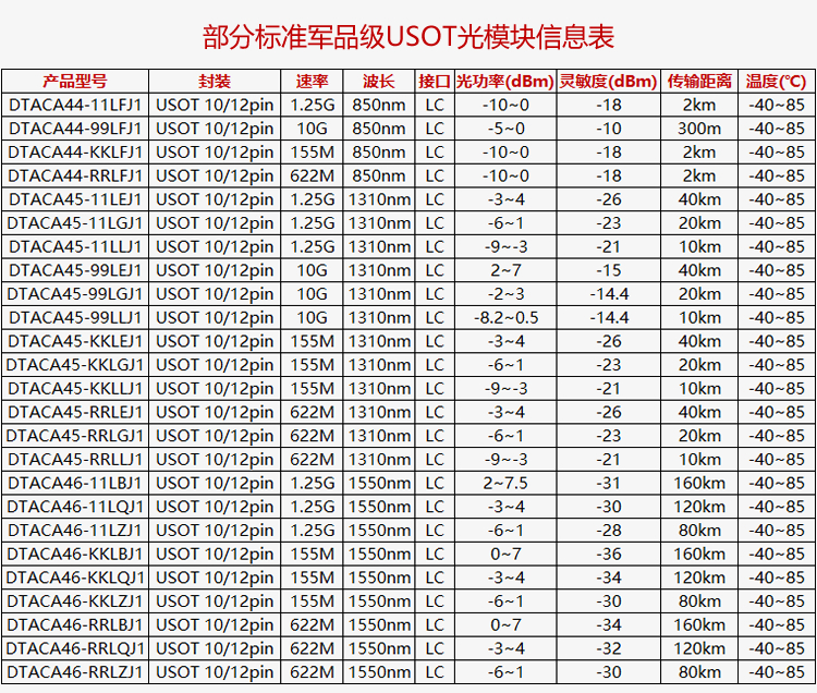 usot 10pin cwdm系列双纤光模块类别:USOT光模块 -